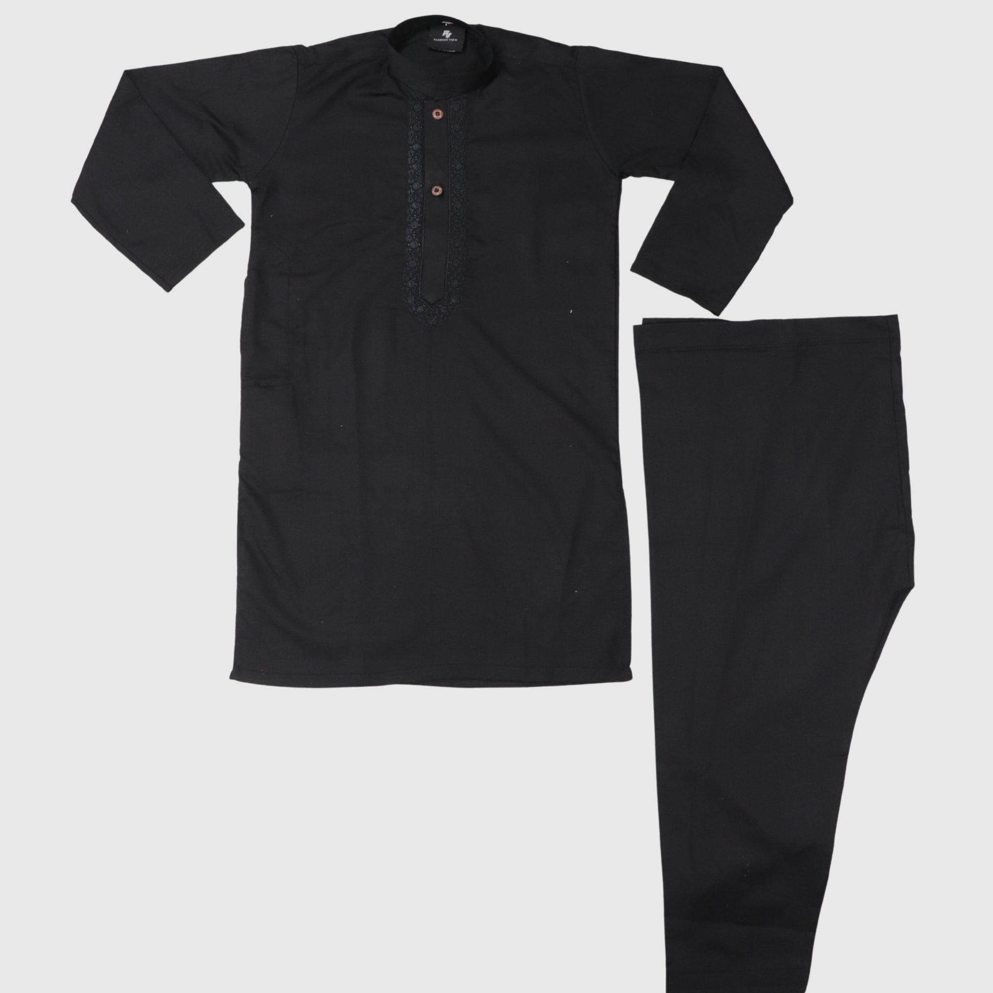 This Black Shalwar Kameez is made from soft blended fabric, gentle on the skin and comfortable all day. The sleek black color gives a stylish and sophisticated look, perfect for casual wear or festive occasions.
