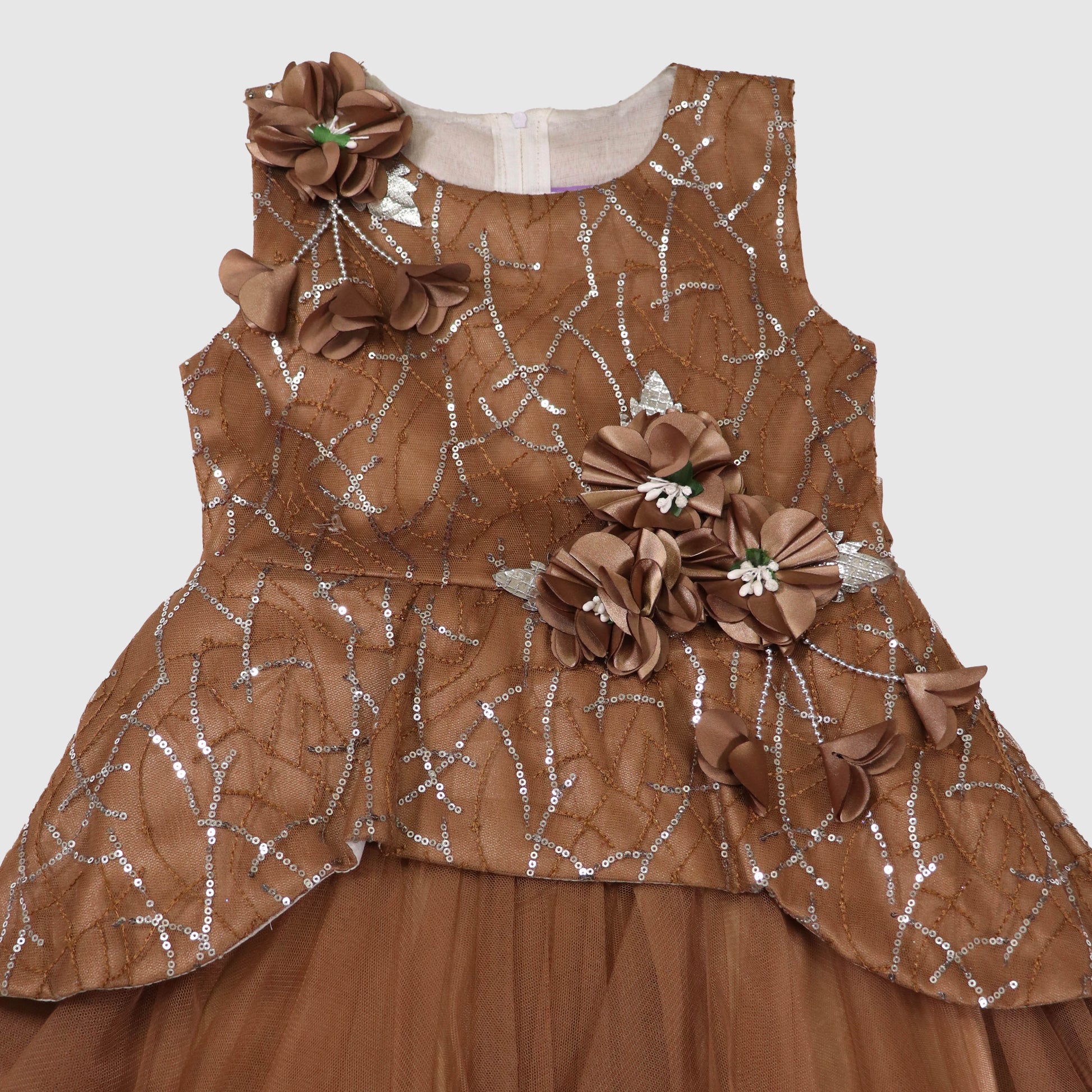 - Bronze High-Low Frock with Net Sleeves