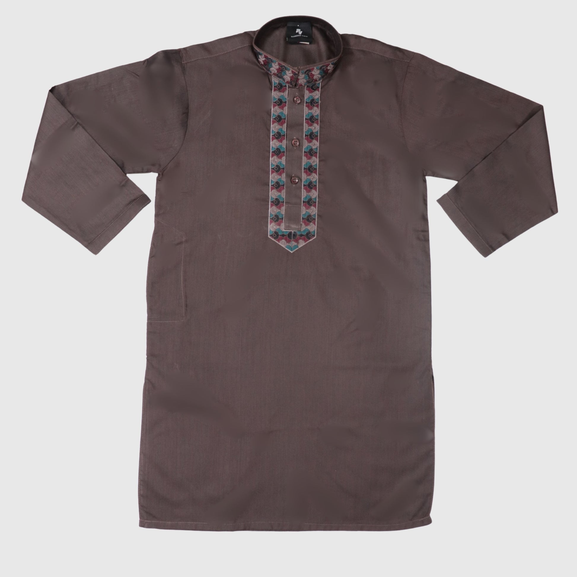 This Brown Kurta Pajama is crafted from high-quality blended fabric, offering a soft and breathable feel. The elegant brown shade gives a graceful and timeless appeal, making it ideal for festive occasions, family gatherings, or formal events.