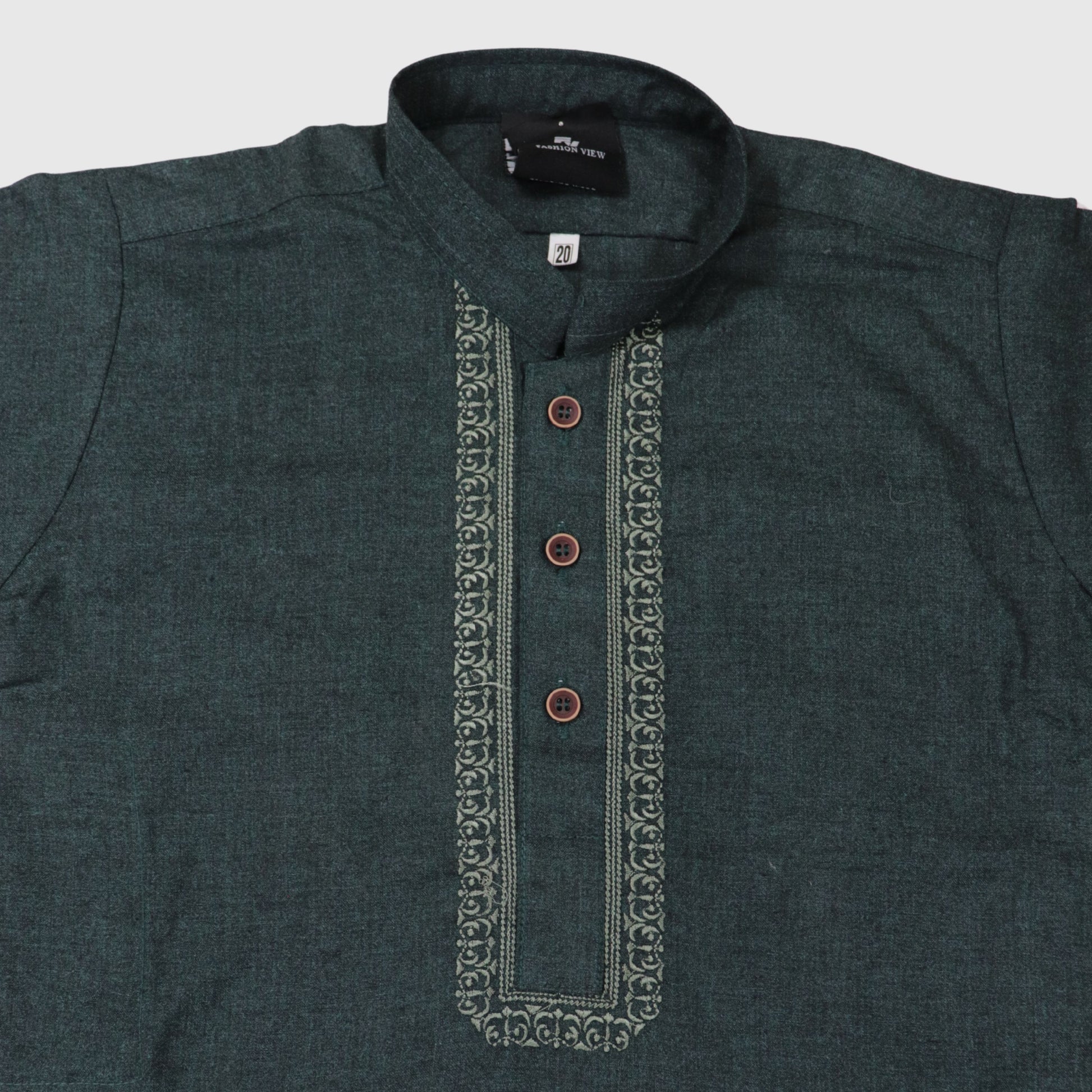 This Green Shalwar Kameez is crafted from soft blended fabric, providing a gentle and comfortable feel for your child. The breathable material ensures all-day comfort without irritating the skin. The fresh green color gives a lively and stylish look, perfect for casual outings, family gatherings, or festive occasions. Its lightweight and soft fabric keeps your little one comfortable while looking smart and elegant.