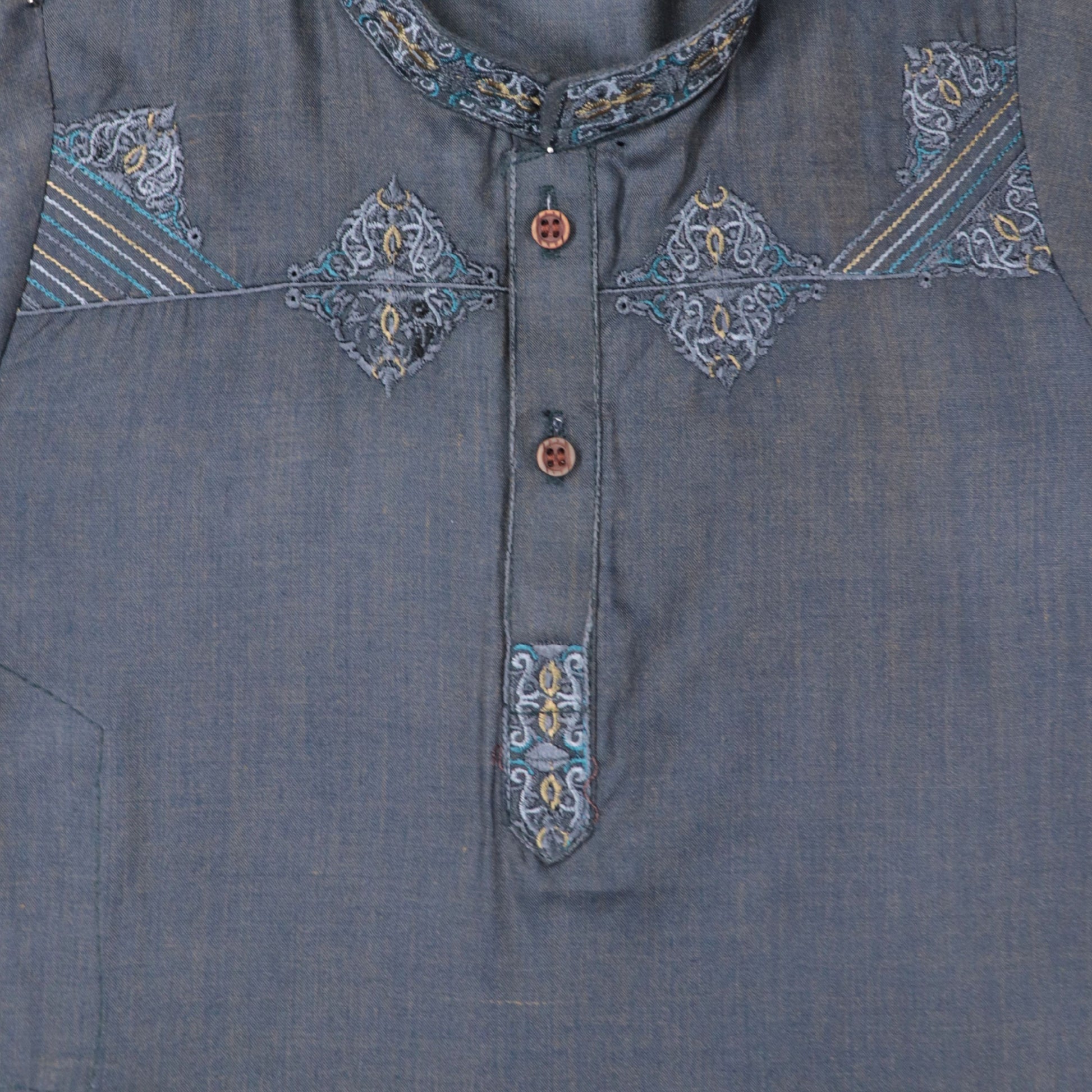 Keep your little one cozy and stylish with this Dark Grey Kurta and Pajama set. Crafted from soft blended fabric, it’s gentle on the skin and ensures all-day comfort. The elegant dark grey shade makes it perfect for casual wear, family gatherings, or festive occasions.