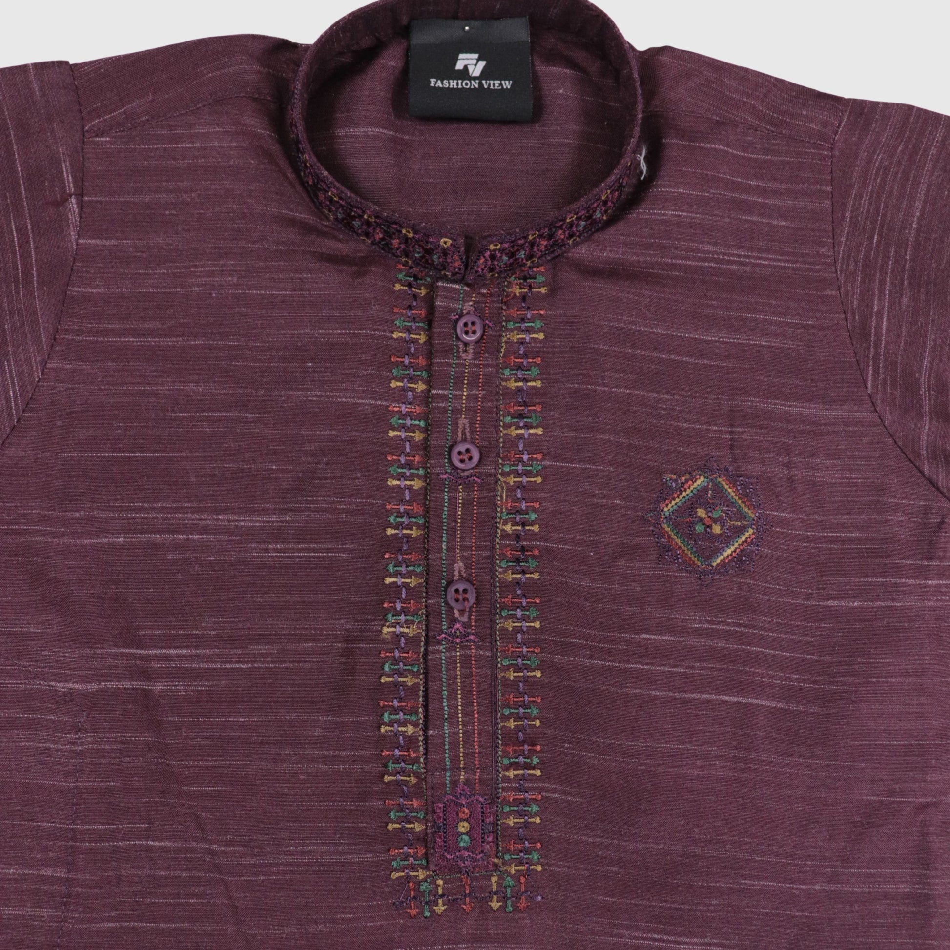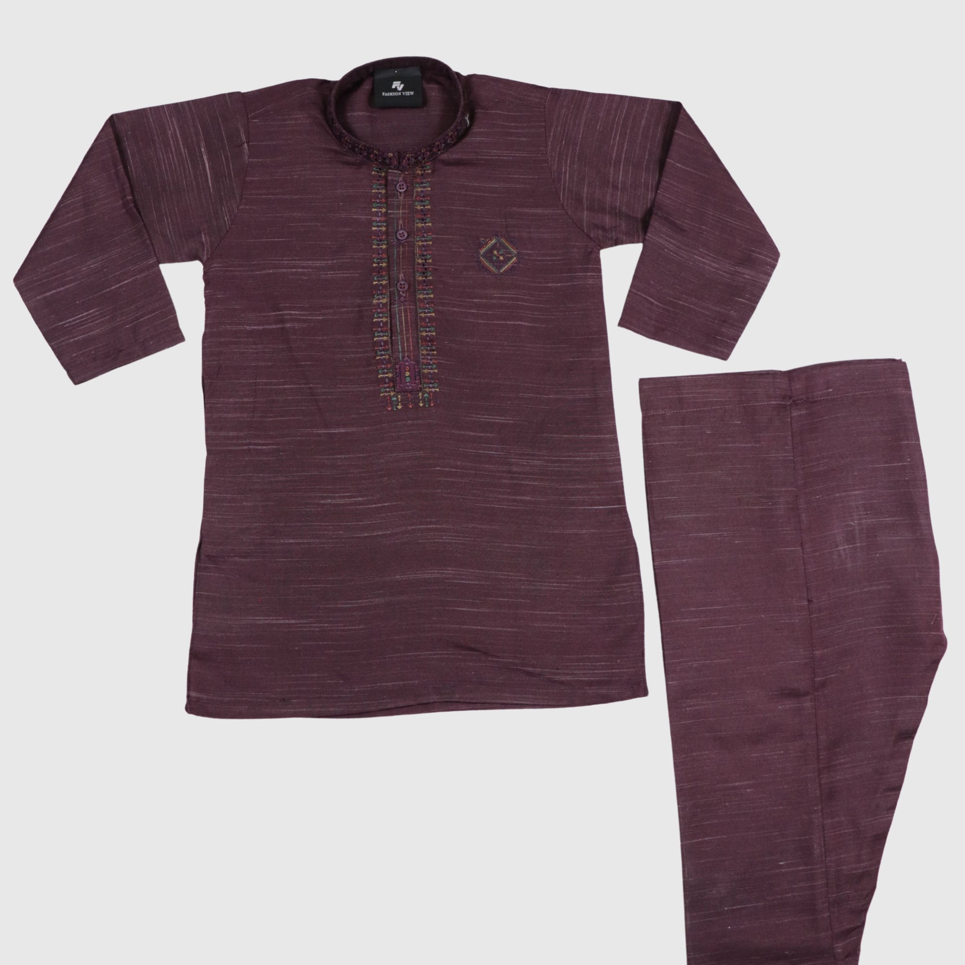 This Deep Maroon Shalwar Kameez brings a rich and elegant look to your little one’s wardrobe. Made from soft blended fabric, it’s gentle on the skin and ensures all-day comfort. Ideal for festive occasions, family gatherings, or casual wear.
