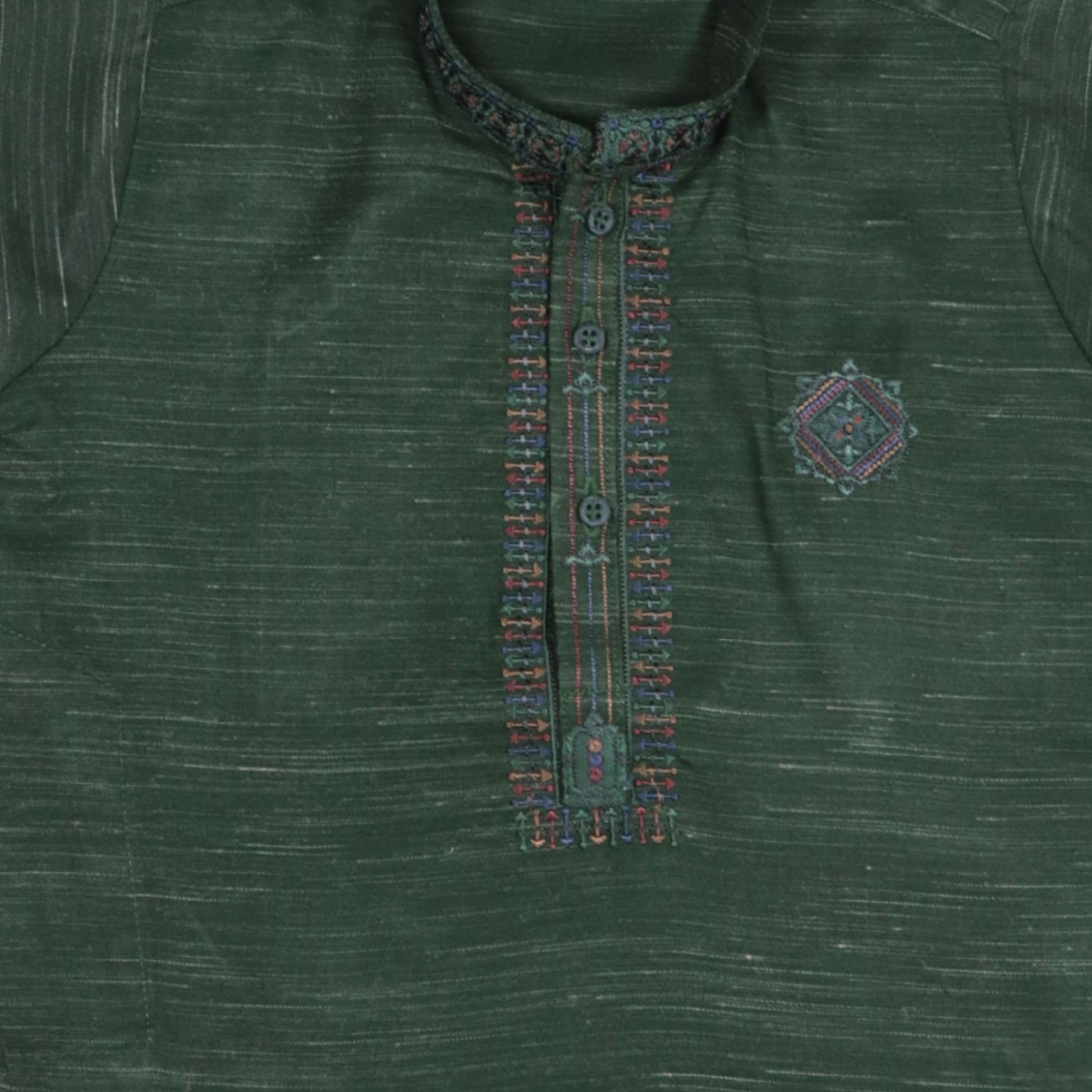 This Green Shalwar Kameez is made from soft blended fabric, providing a comfortable and gentle feel for your child. The fabric is breathable and will not irritate the skin, keeping your little one relaxed throughout the day. The fresh green color adds a simple yet stylish look, perfect for casual wear or festive occasions.