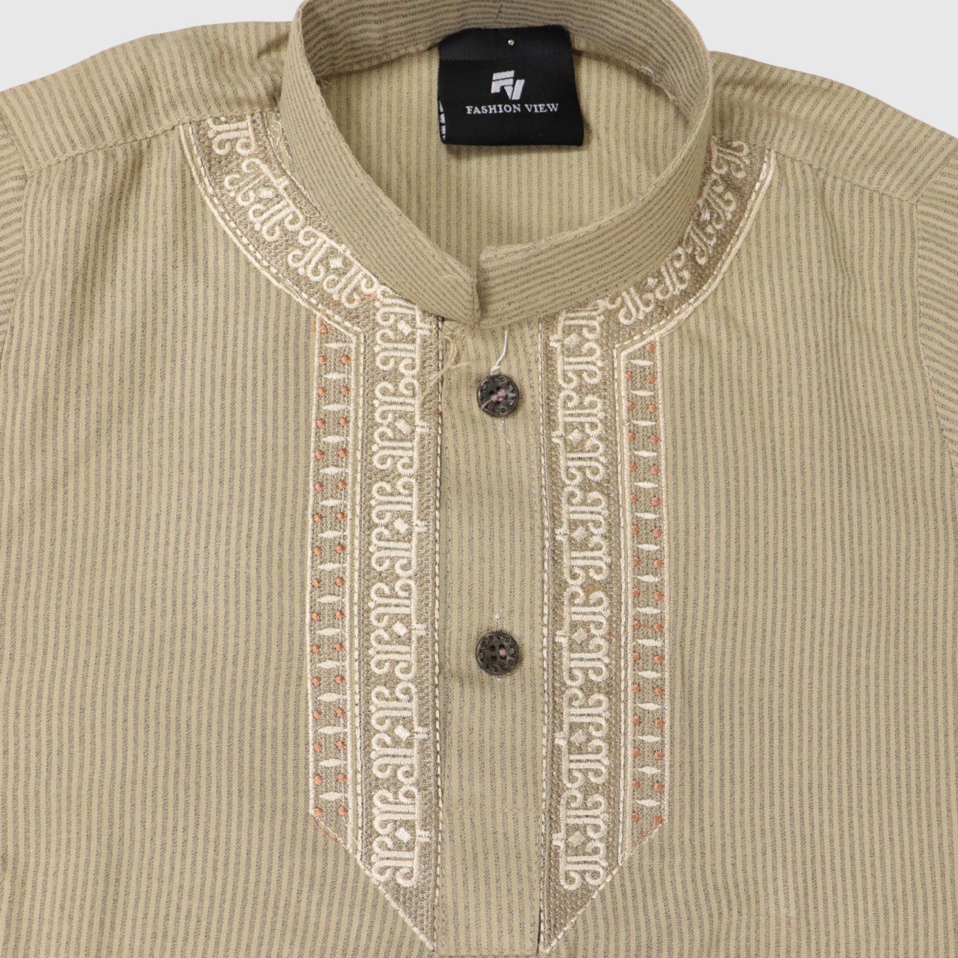 This Light Brown Shalwar Kameez provides a warm and classic look for your little one. Made from soft blended fabric, it’s gentle on the skin and ensures all-day comfort. Ideal for casual wear, festive occasions, or family gatherings.