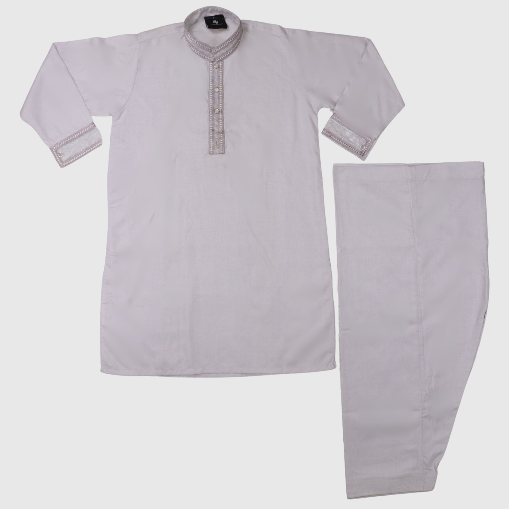 This Light Purple Shalwar Kameez is made from soft blended fabric, providing a gentle and comfortable feel for your child. The breathable material ensures all-day comfort without irritating the skin. The delicate light purple color adds a fresh and charming look, perfect for casual wear, family gatherings, or festive occasions. Its lightweight and soft fabric keeps your little one comfortable while looking smart and elegant.