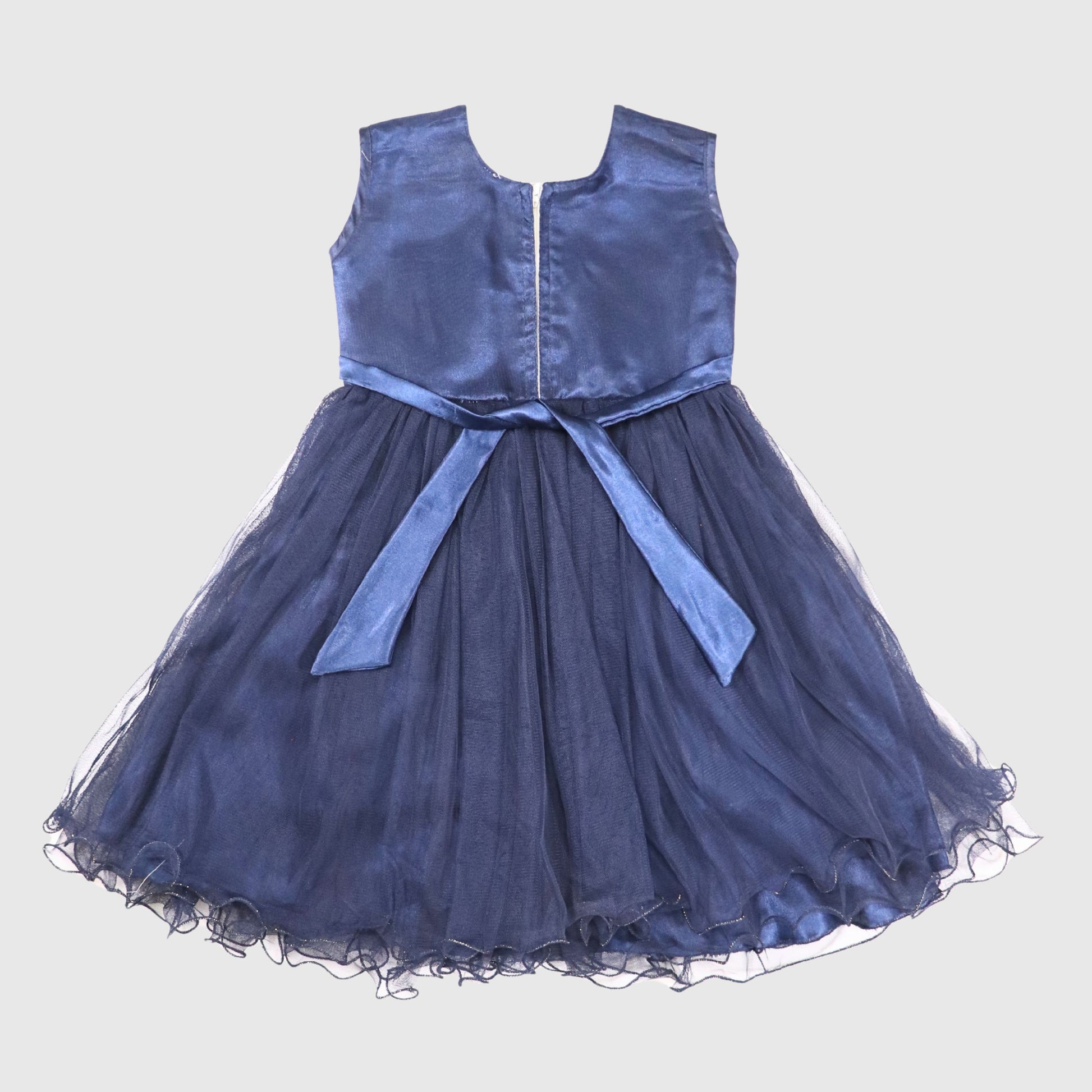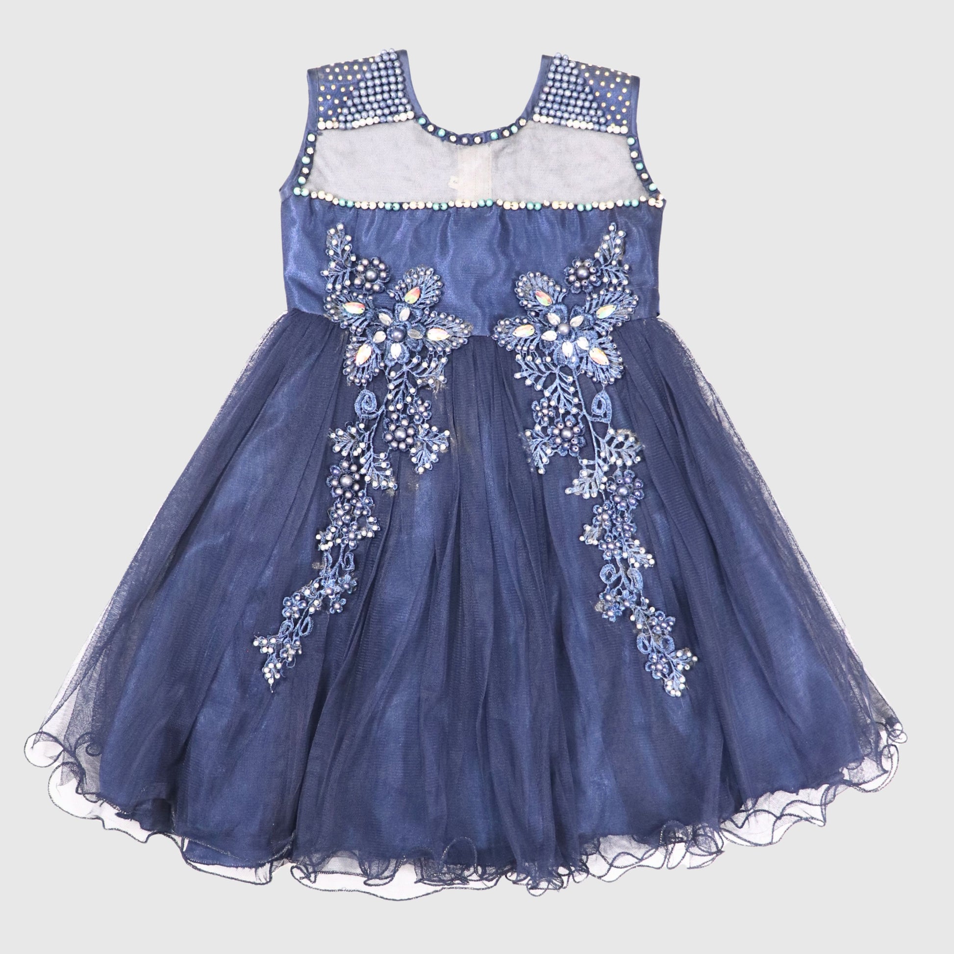 Make your little one the star of any celebration with this charming ocean blue party ensemble. Soft and comfortable, it features a flared frock perfect for twirling, delicate net sleeves for an elegant touch, and a matching trouser for a complete party-ready look. Ideal for birthdays, festive occasions, and special events.