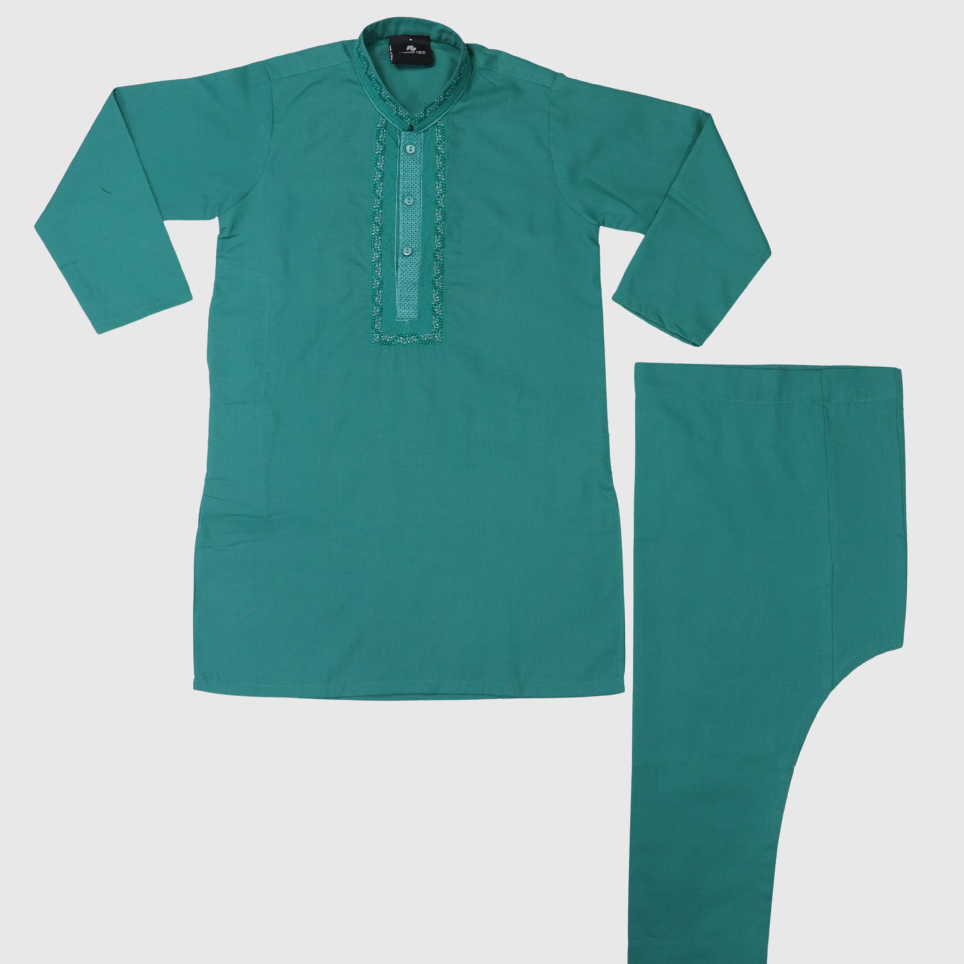 This Sea Green Shalwar Kameez is made from soft blended fabric, providing a gentle and comfortable feel for your child. The breathable material ensures all-day comfort without irritating the skin. The refreshing sea green color adds a lively and stylish touch, perfect for casual outings, family gatherings, or festive occasions. Its lightweight and soft fabric keeps your little one comfortable while looking smart and elegant.