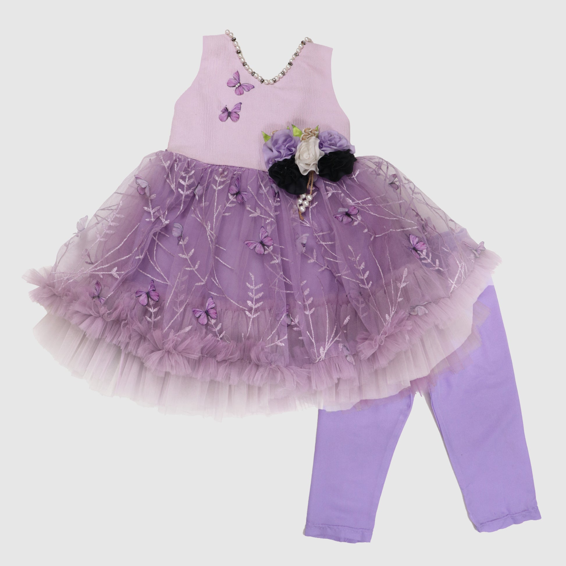 Each outfit is designed to make her shine with delicate embellishments, flowy tulle, and rich festive colors. This graceful Purple Frock Set combines comfort and elegance, making it a lovely choice for parties, festivals, or special occasions.