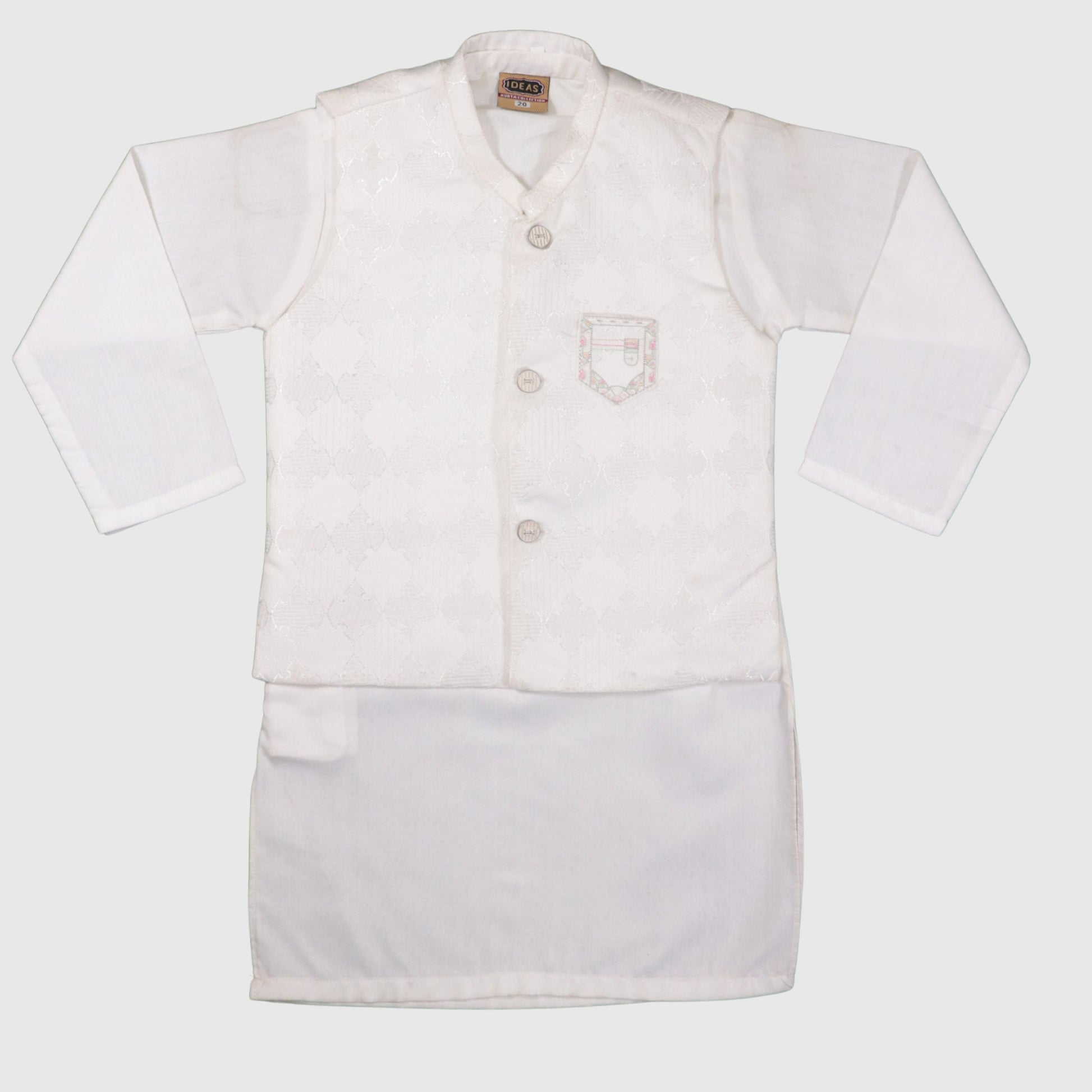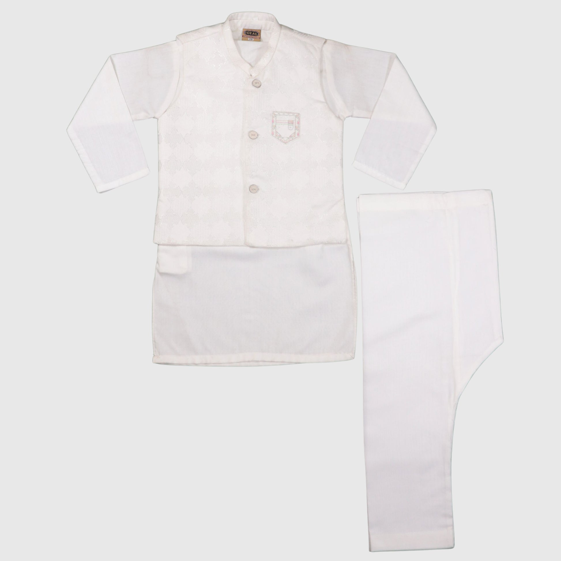 White Kurta Pajama with Waistcoat – Kids