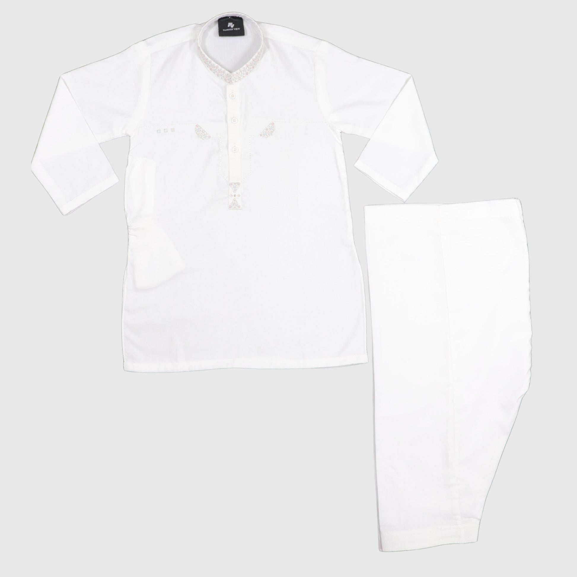 This White Shalwar Kameez is made from soft blended fabric, providing a gentle and comfortable feel for your child. The breathable material will not irritate the skin, keeping your little one relaxed throughout the day. The crisp white color gives a fresh and elegant look, suitable for casual wear or festive occasions.