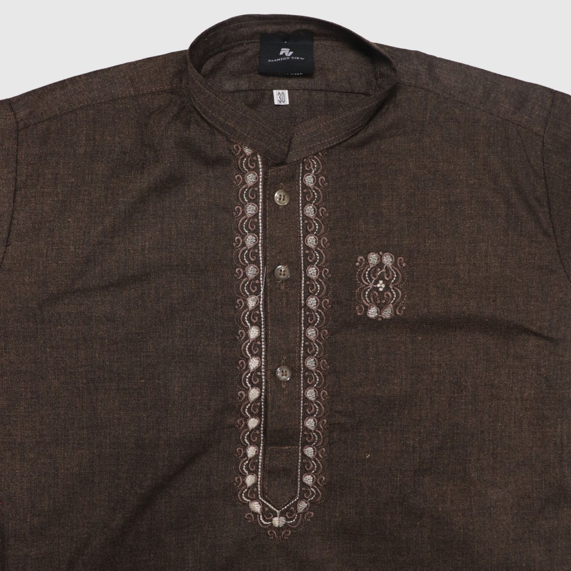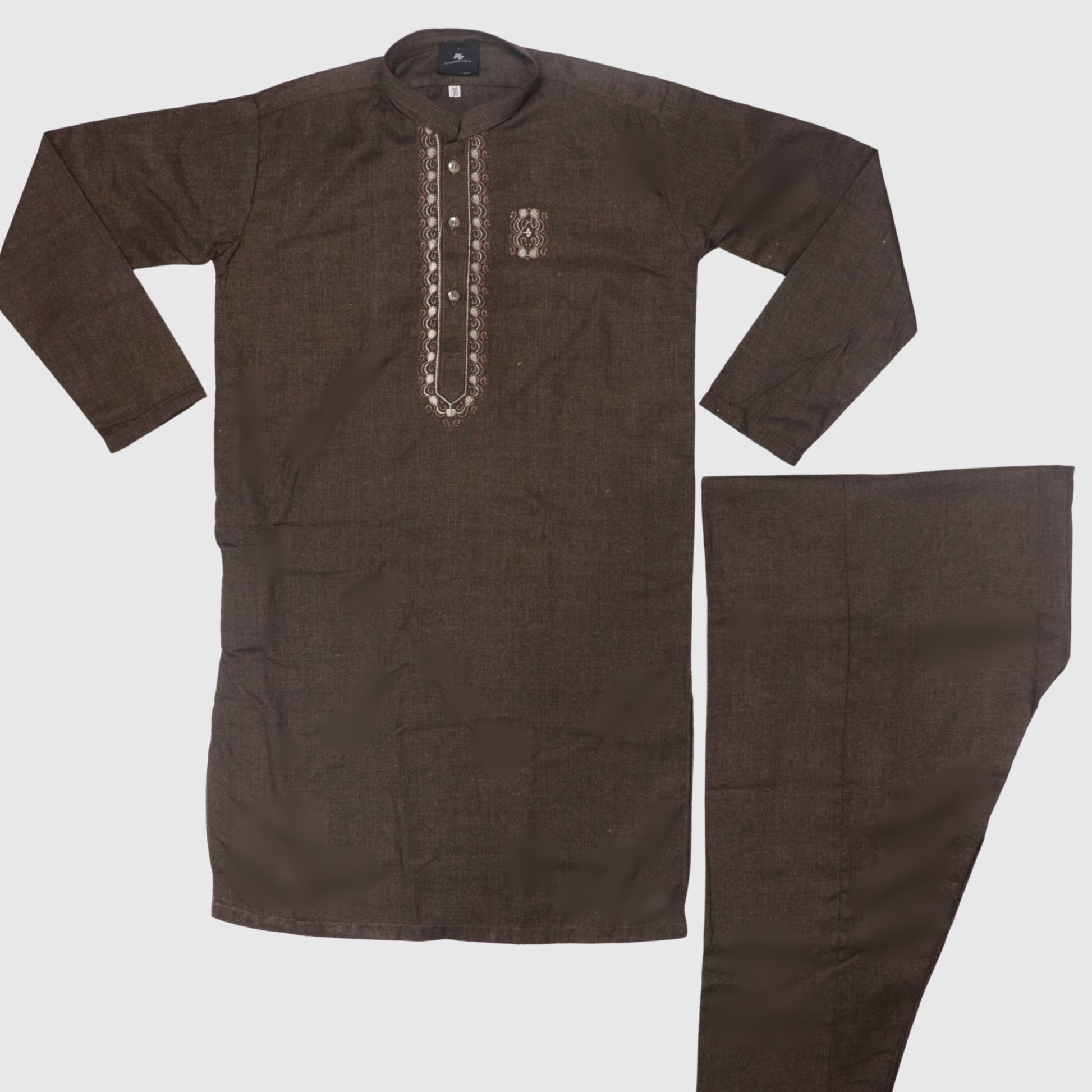 This Wood Brown Kurta Shalwar is made from soft blended fabric, ensuring all-day comfort for your child. The warm wood brown color gives a stylish and classic look, perfect for festive occasions, family gatherings, or casual events.